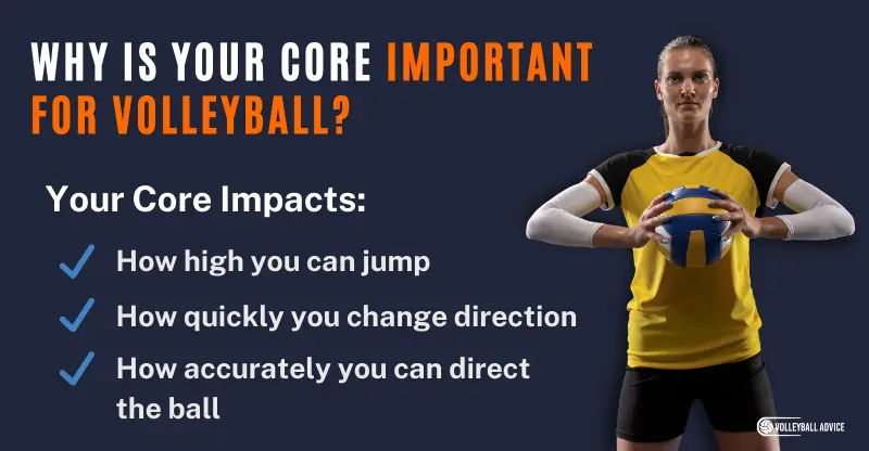 Aesthetics are always nice and may result from any ab exercise, but the main focus for volleyball players is to improve their athletic abilities on the court. This is done through exercises that help to create power and stability.